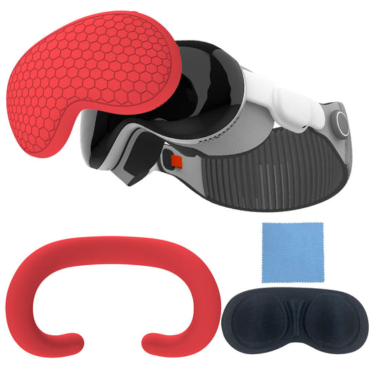 Full Protection Silicone Case for Apple Vision Pro - Soft and Durable Silicone Cover set for Vision Pro Accessories - Face Cover, Shell Cover, Lens Cover and Glasses Cloth Included (Red)